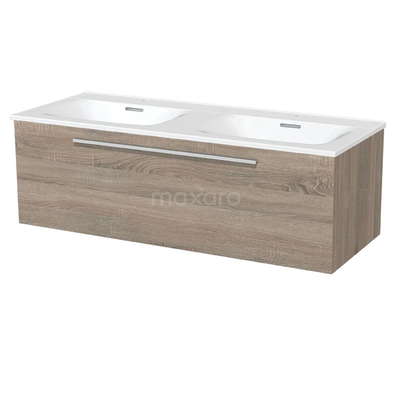 Badmöbel 120cm Modulo Eiche 1 Schublade Flaches Waschbecken Keramik