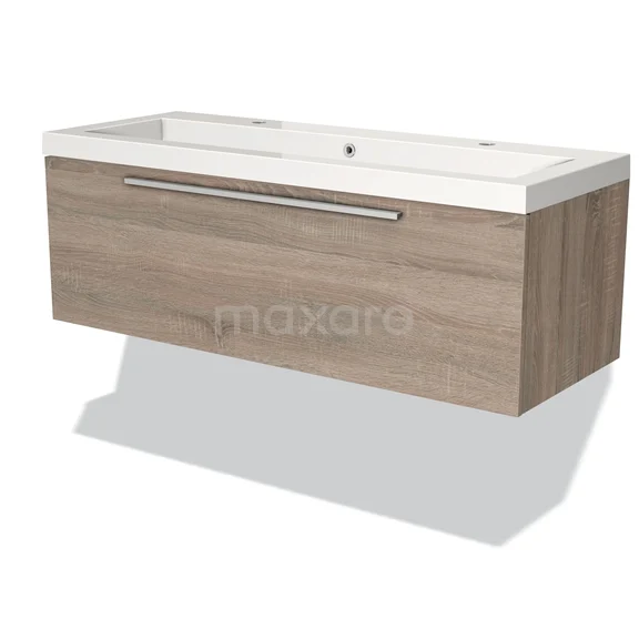 Badmöbel 120cm Modulo Eiche 1 Schublade Flaches Waschbecken Mineralguss