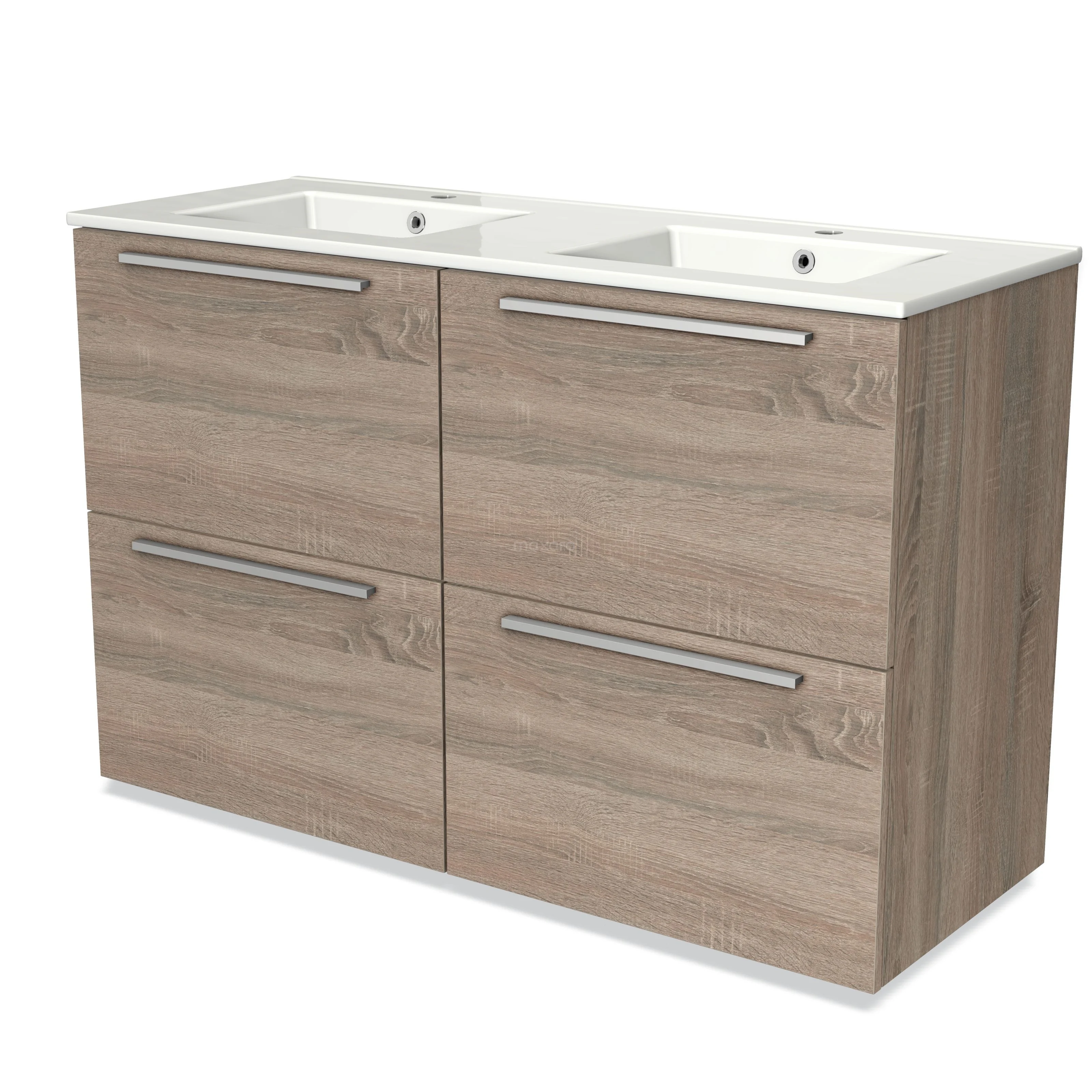 Badmöbel 120cm Modulo Eiche 4 hohe Schubladen Flaches Waschbecken Keramik