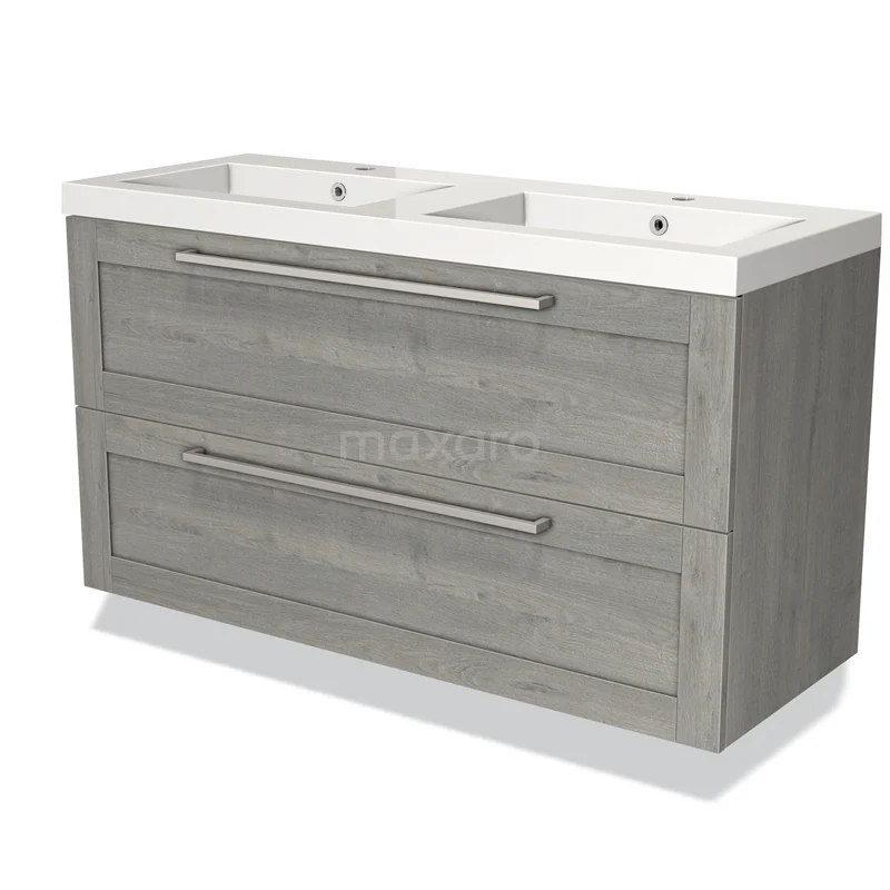Badmöbel 120cm Modulo Graue Eiche 2-Schubladen-Rahmen Waschbecken Mineralguss Marmor