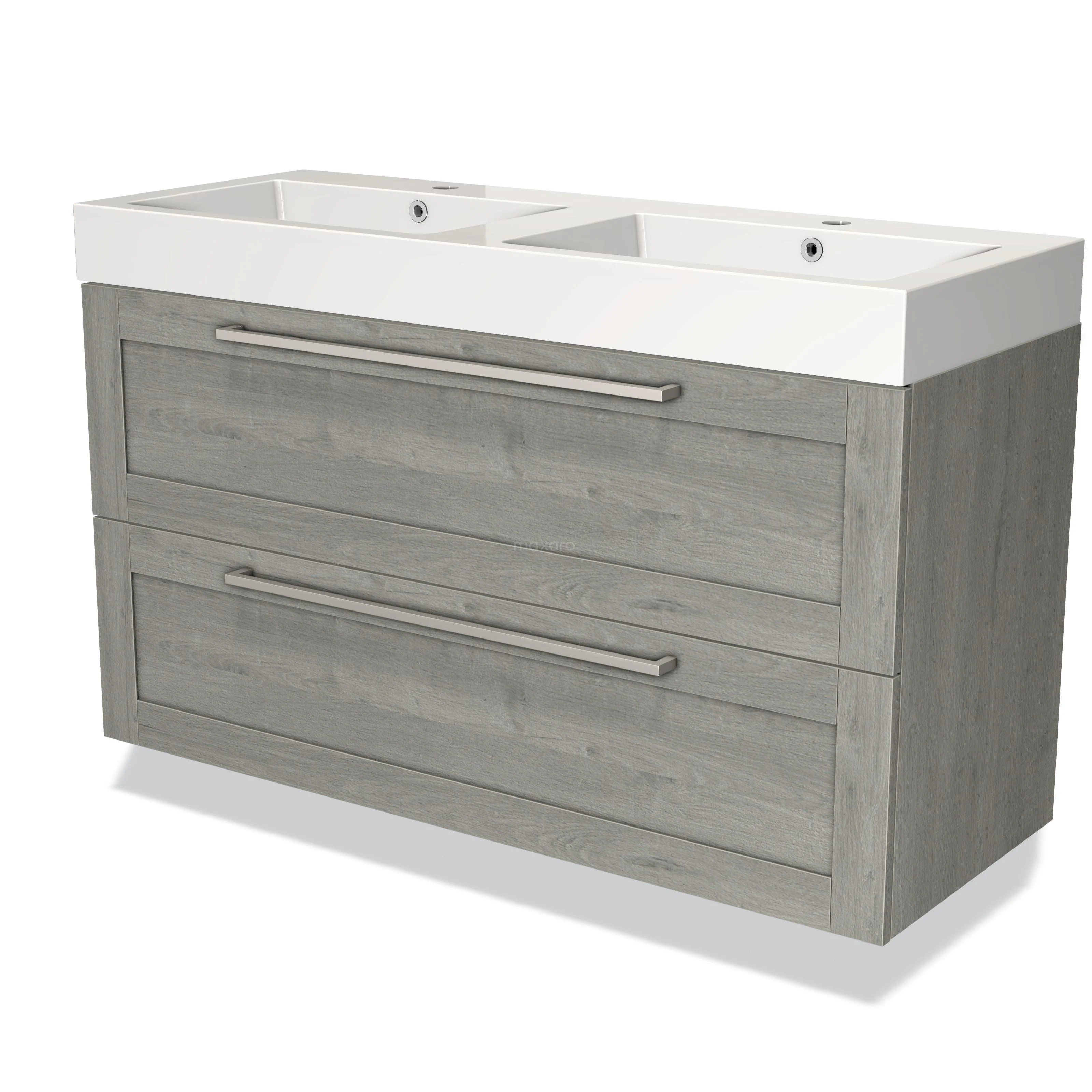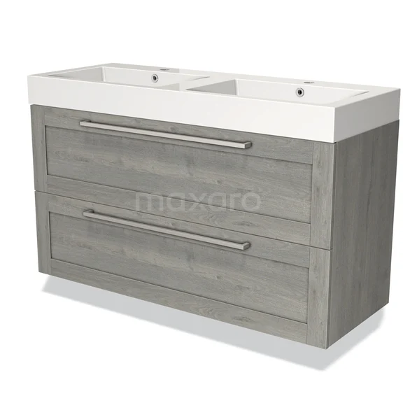 Badmöbel 120cm Modulo Graue Eiche 2-Schubladen-Rahmen Waschbecken Mineralguss Marmor