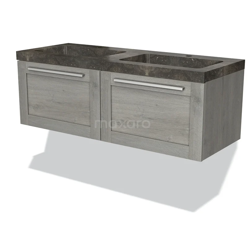 Badmöbel 120cm Modulo Graue Eiche 2 Schubladen Rahmen Waschbecken Naturstein Blaustein
