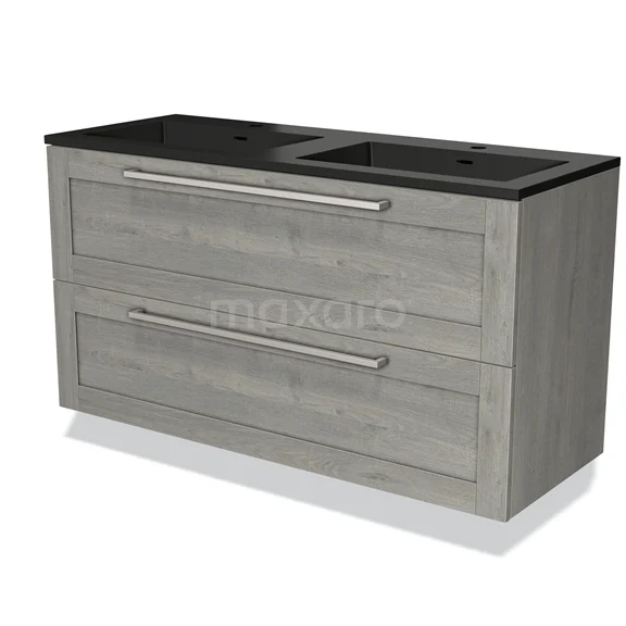 Badmöbel 120cm Modulo Graue Eiche 2 Schubladen Rahmen Waschbecken Quarz