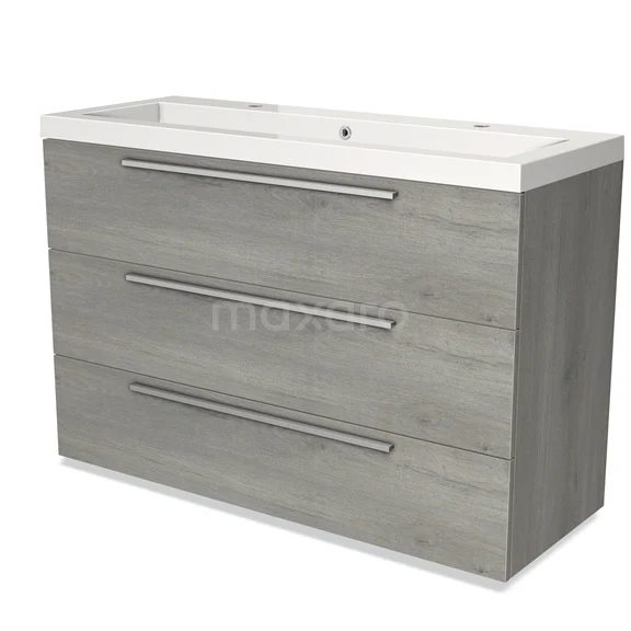 Badmöbel 120cm Modulo Graue Eiche 3 Schubladen Flaches Waschbecken Mineralguss