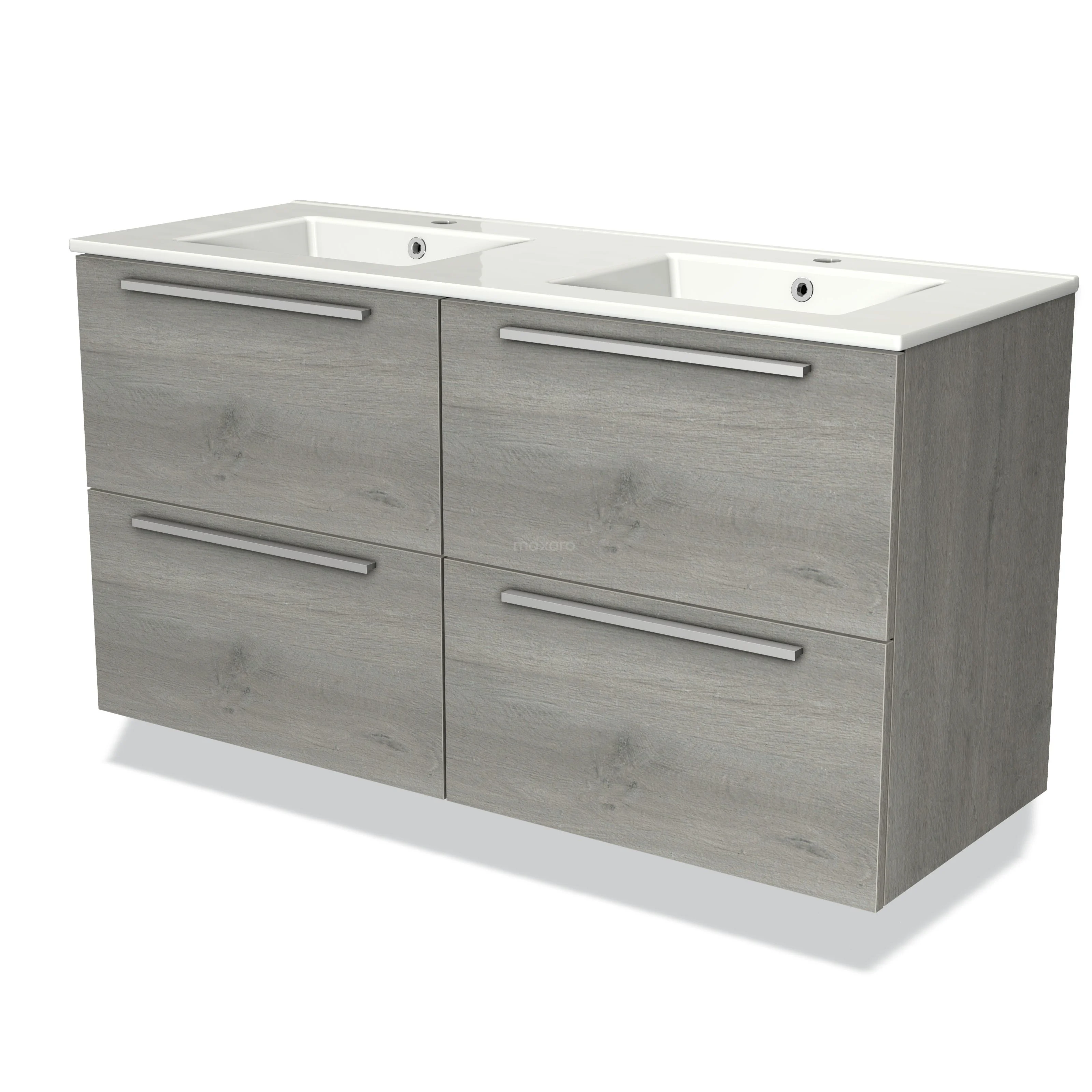 Modulo Waschtische | 120 cm Graue Eiche Flach front Keramik 4 Schubladen