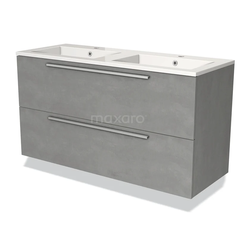Badmöbel 120cm Modulo hellgrauer Beton 2 Schubladen Flaches Waschbecken Mineralguss