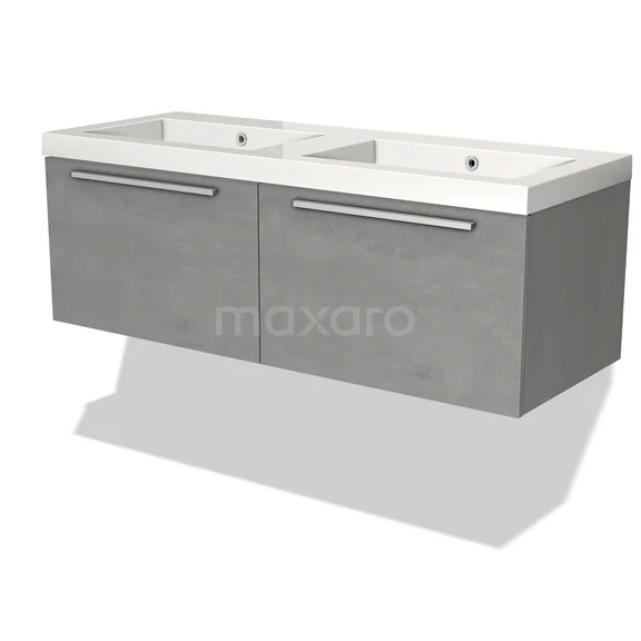 Badmöbel 120cm Modulo hellgrauer Beton 2 Schubladen Flaches Waschbecken Mineralguss