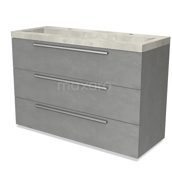 Badmöbel 120cm Modulo hellgrauer Beton 3 Schubladen Flaches Waschbecken Beton