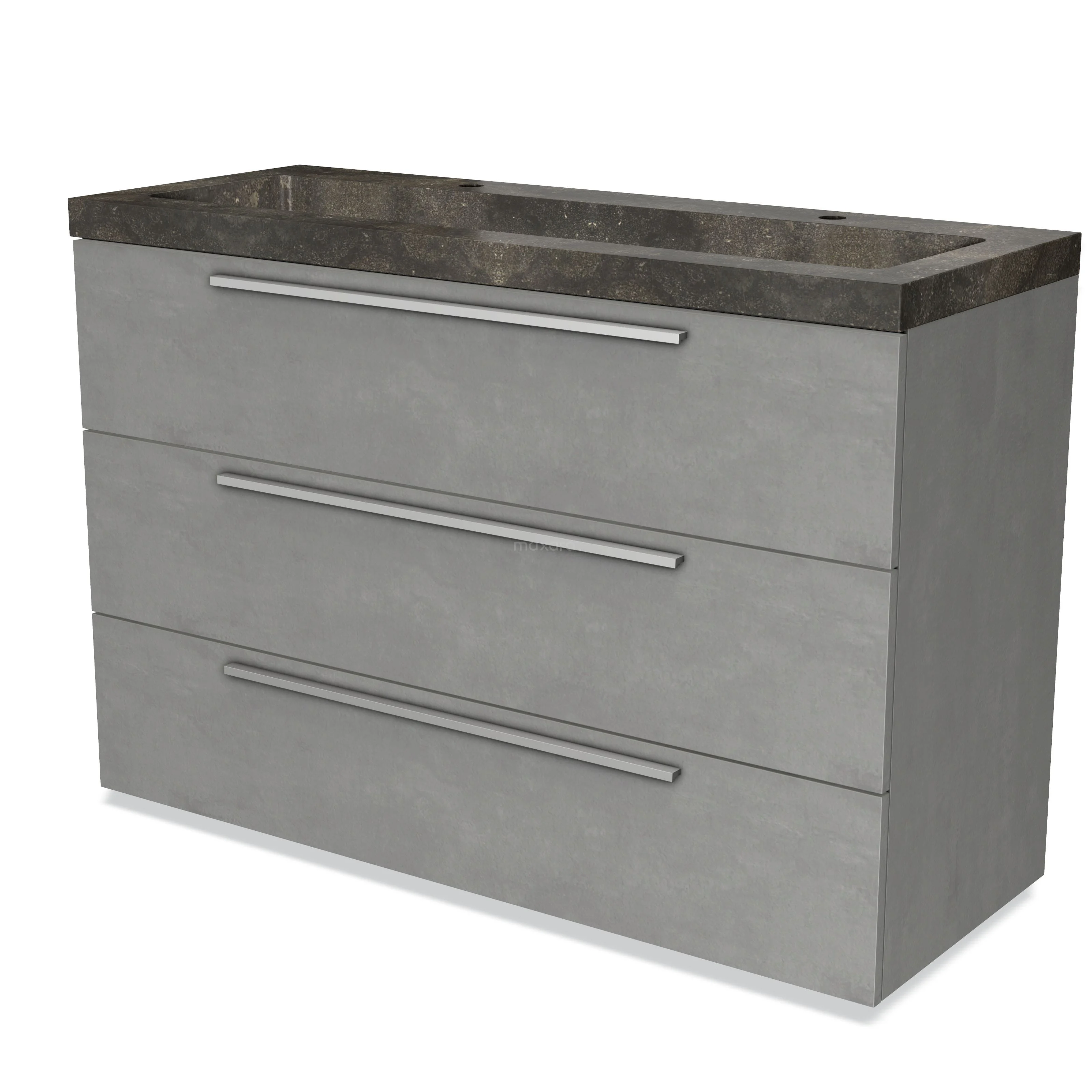 Badmöbel 120cm Modulo hellgrauer Beton 3 Schubladen Flaches Waschbecken Naturstein Blaustein