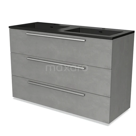 Badmöbel 120cm Modulo hellgrauer Beton 3 Schubladen Flaches Waschbecken Quarz