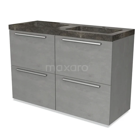 Badmöbel 120cm Modulo hellgrauer Beton 4 hohe Schubladen Flaches Waschbecken aus Naturstein blau