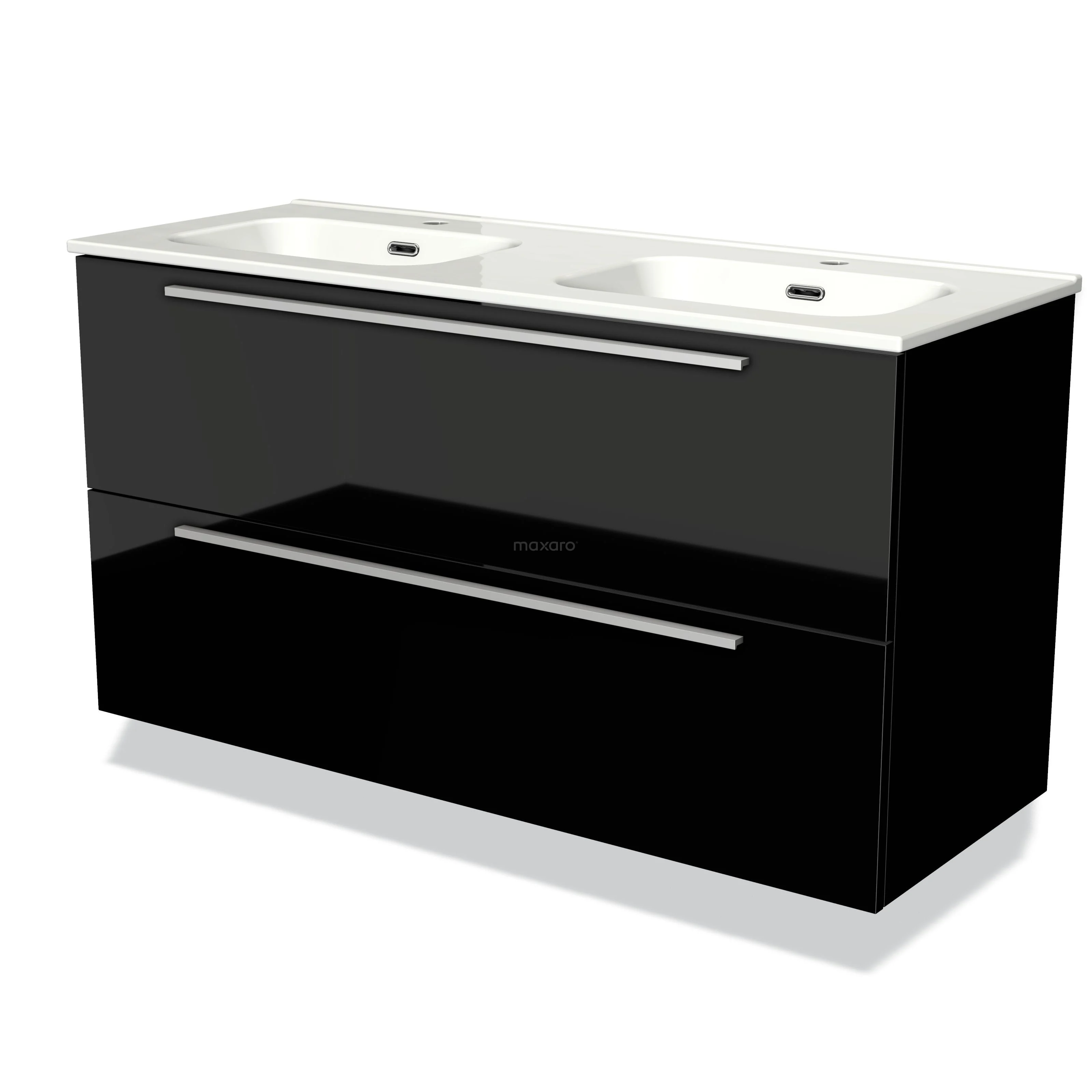 Badmöbel 120cm Modulo Hochglanz Schwarz 2 Schubladen Flaches Waschbecken Keramik
