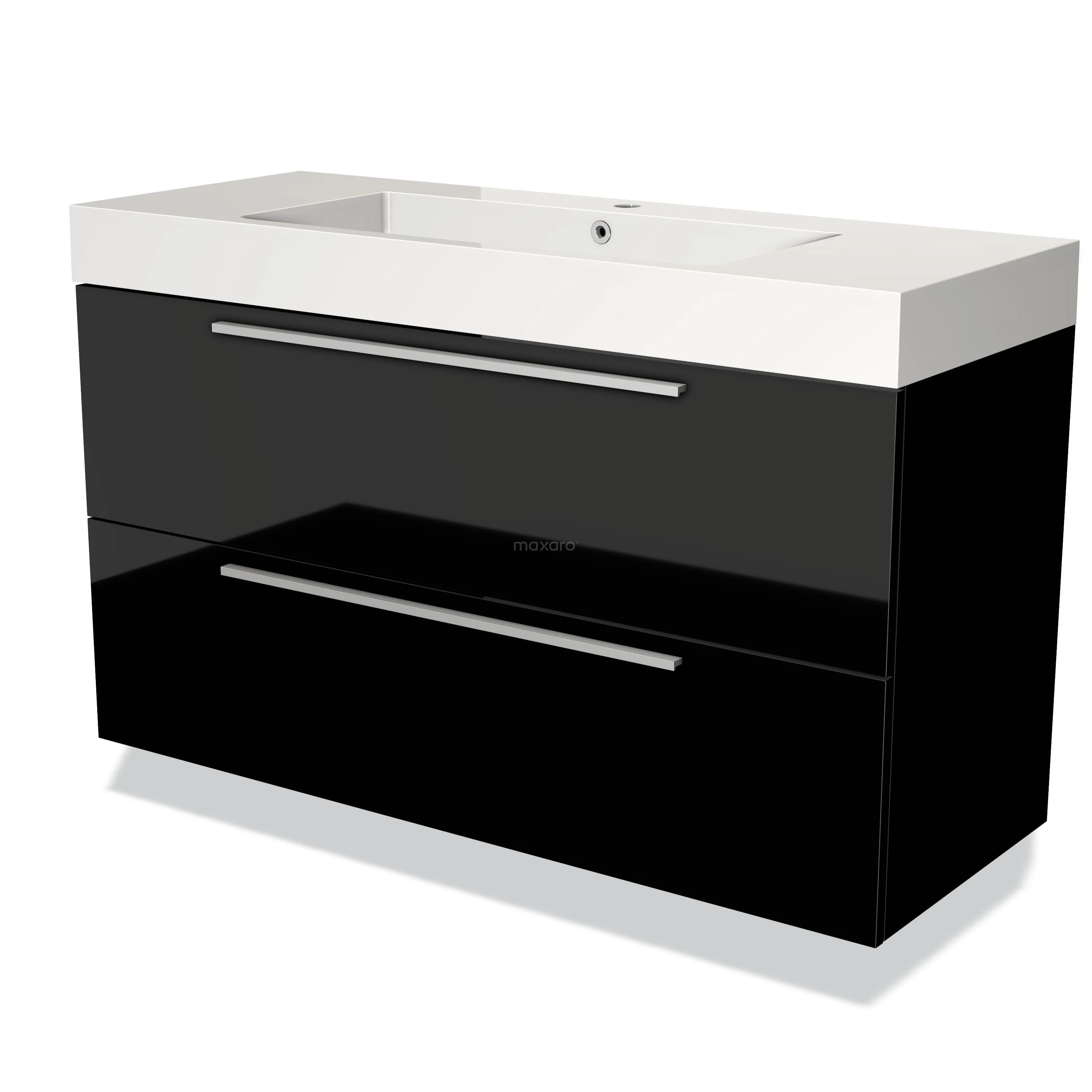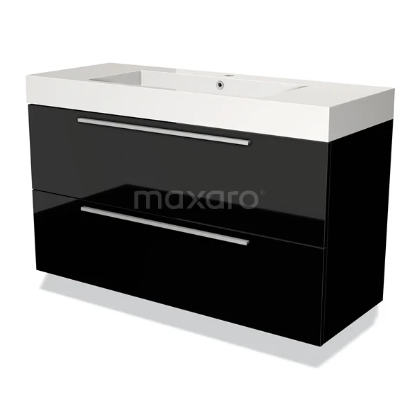 Badmöbel 120cm Modulo Hochglanz Schwarz 2 Schubladen Flaches Waschbecken Mineralguss