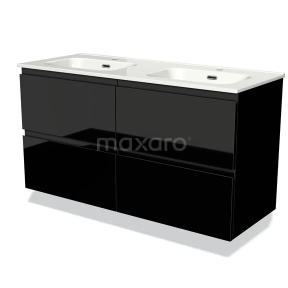 Badmöbel 120cm Modulo Hochglanz Schwarz 4 Schubladen Griffloses Waschbecken Keramik