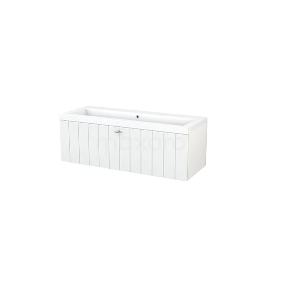 Badmöbel 120cm Modulo+ Hochglanz Weiß 1 Schubladen-Lamellen-Waschbecken Mineralguss