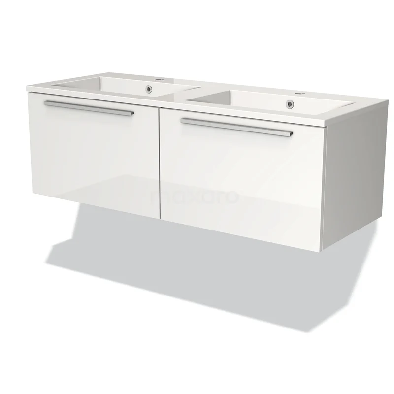 Badmöbel 120cm Modulo Hochglanz Weiß 2 Schubladen Flaches Waschbecken Mineralguss