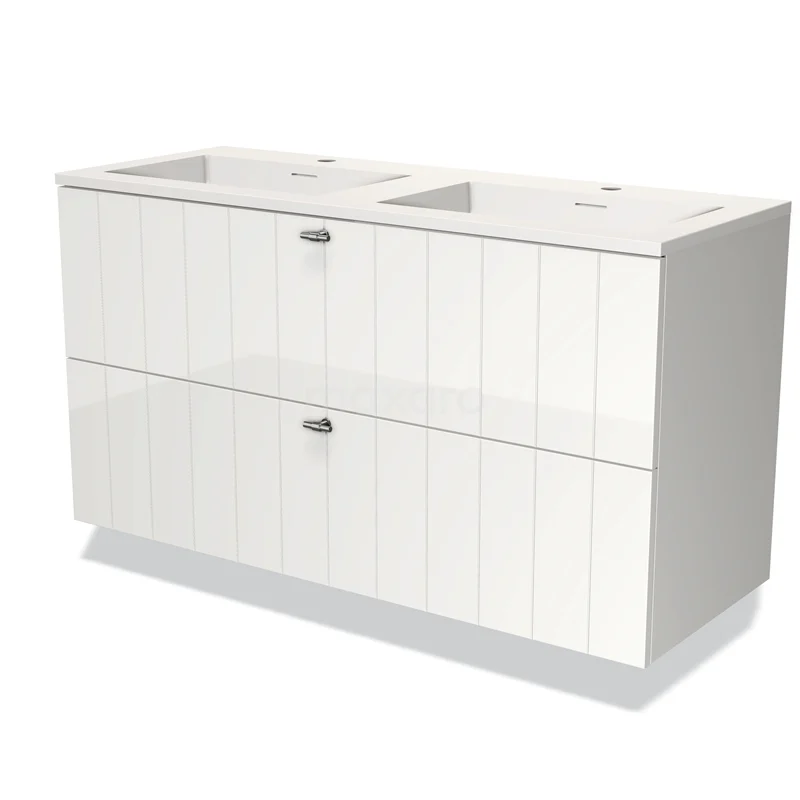 Badmöbel 120cm Modulo Hochglanz Weiß 2 Schubladen Lamellenwaschbecken Solid Surface