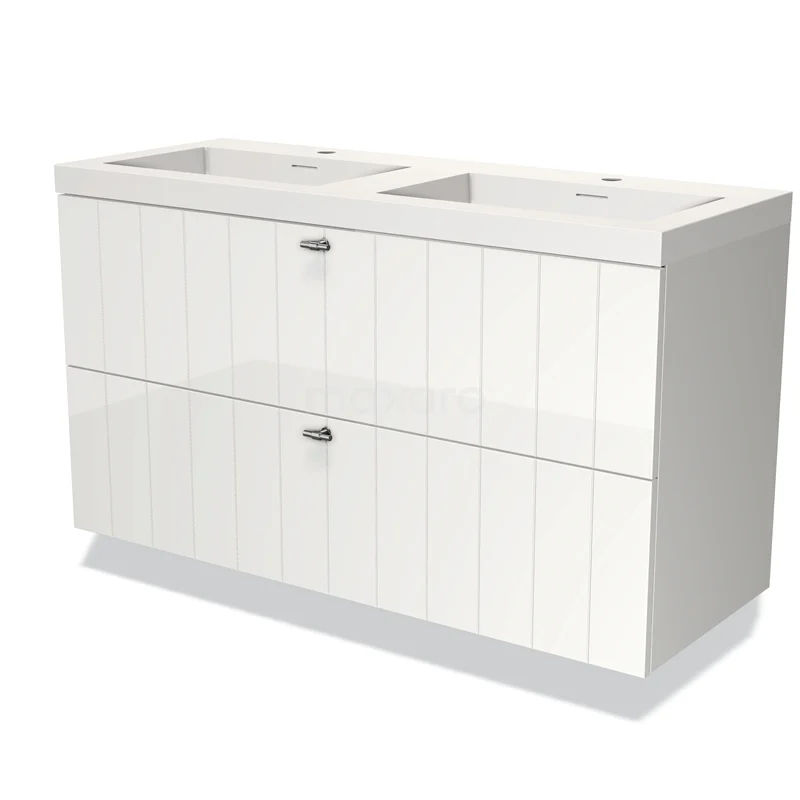 Badmöbel 120cm Modulo Hochglanz Weiß 2 Schubladen Lamellenwaschbecken Solid Surface