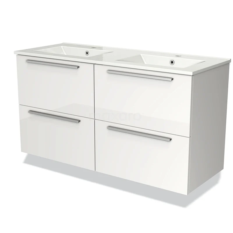 Badmöbel 120cm Modulo Hochglanz Weiß 4 Schubladen Flaches Waschbecken Keramik