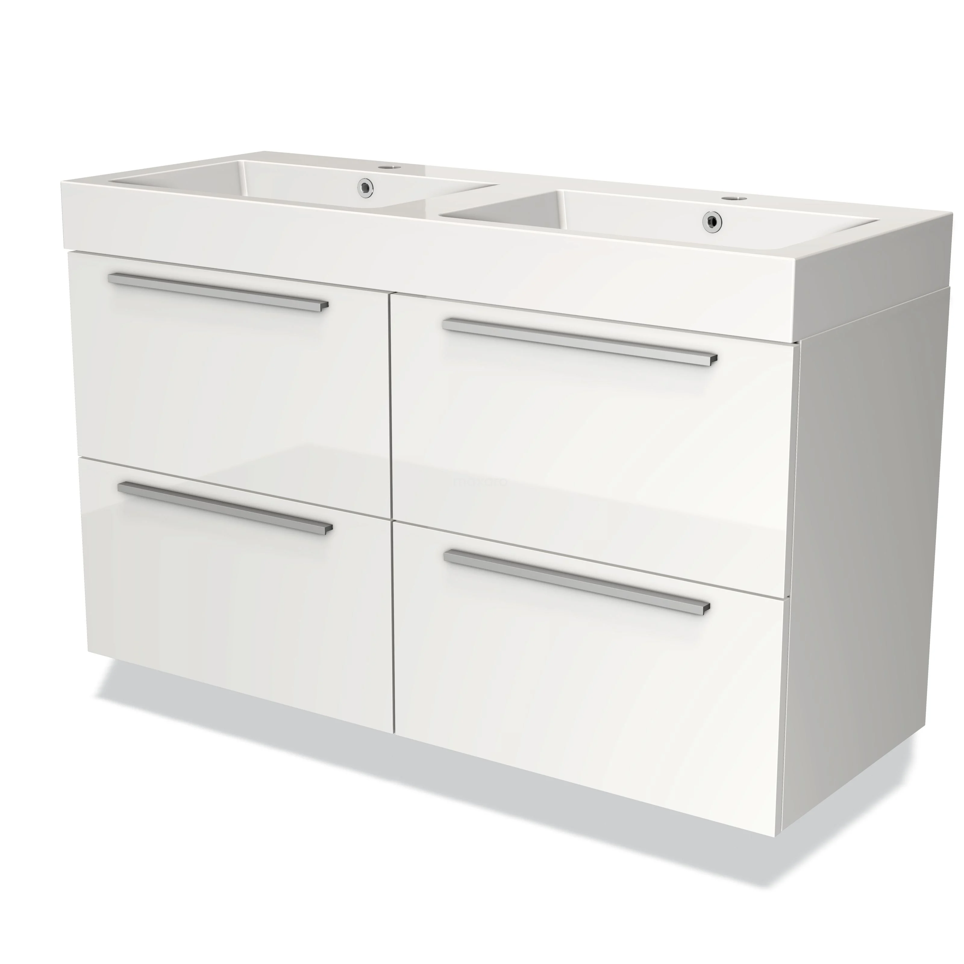 Badmöbel 120cm Modulo Hochglanz Weiß 4 Schubladen Flaches Waschbecken Mineralguss