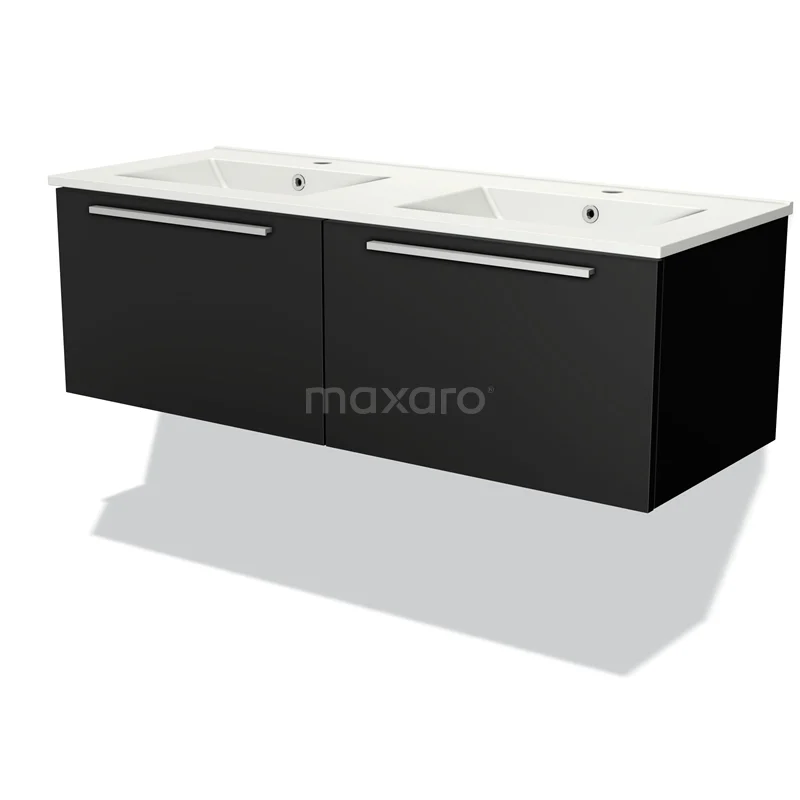 Badmöbel 120cm Modulo Matt Schwarz 2 Schubladen Flaches Waschbecken aus Keramik