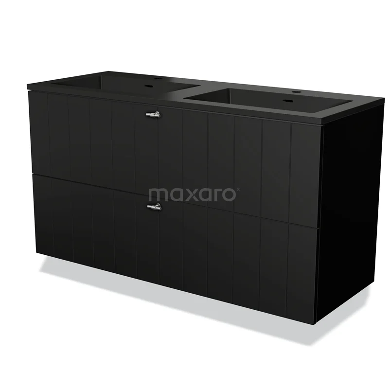 Badmöbel 120cm Modulo Matt Schwarz 2 Schubladen Lamel Waschbecken Quarz