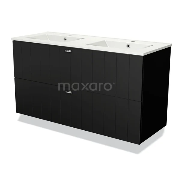 Badmöbel 120cm Modulo Matt Schwarz 2 Schubladen Lamellenwaschbecken Keramik
