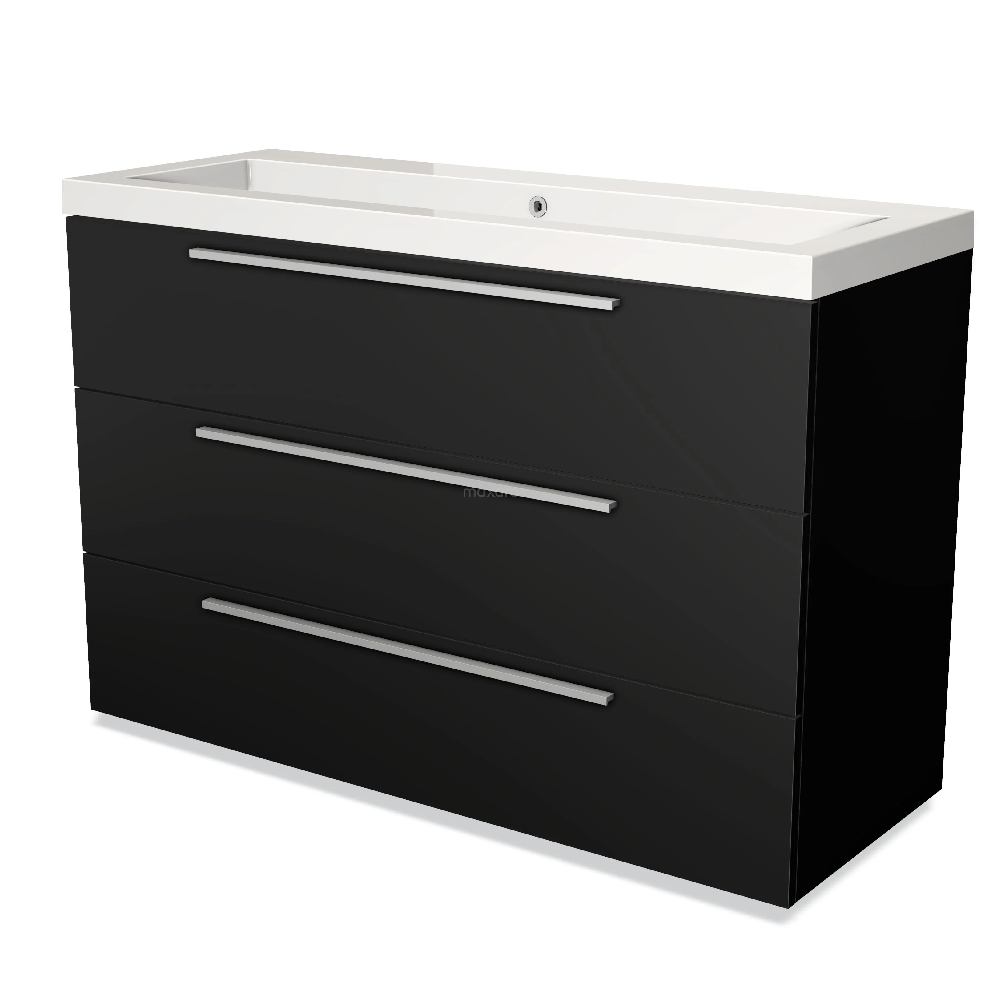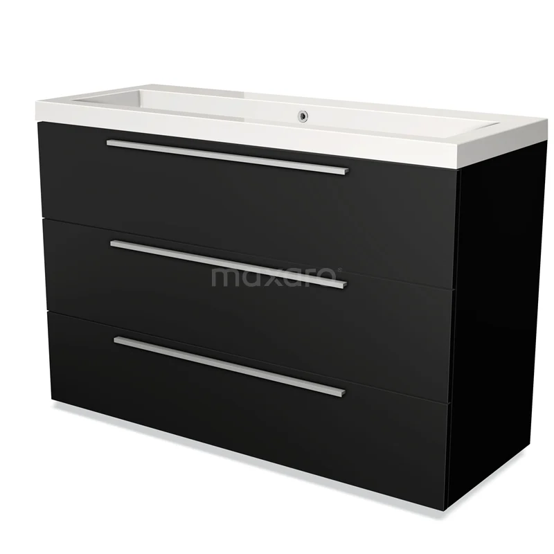 Badmöbel 120cm Modulo Matt Schwarz 3 Schubladen Flaches Waschbecken Mineralguss