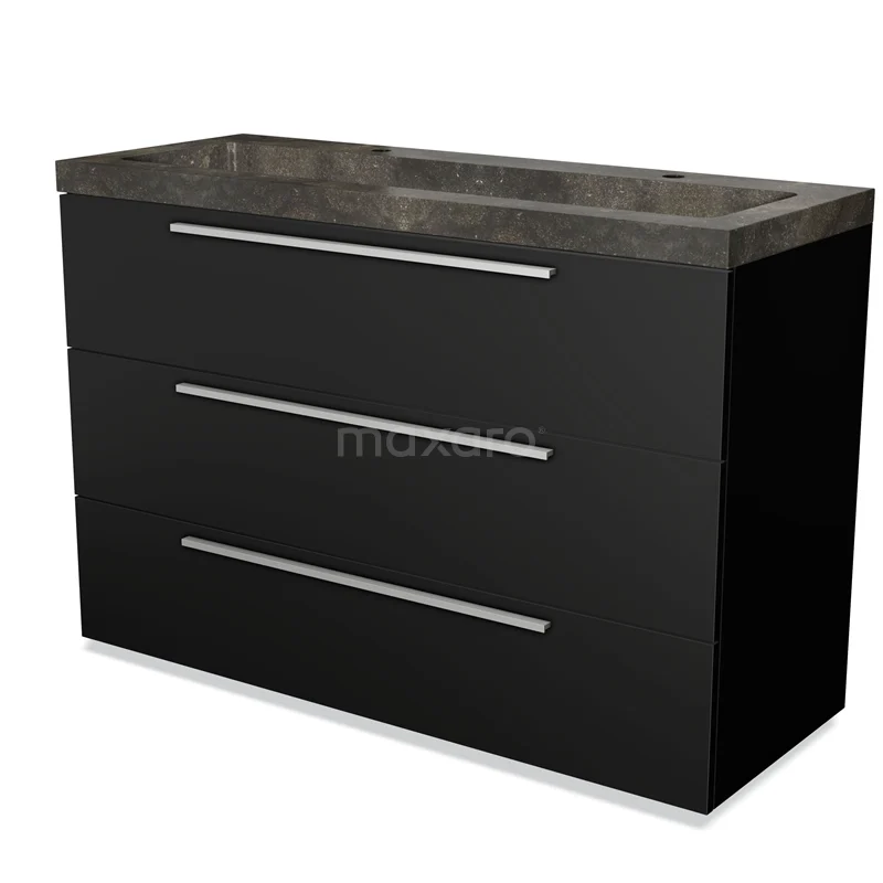 Badmöbel 120cm Modulo Matt Schwarz 3 Schubladen Flaches Waschbecken Naturstein Blau