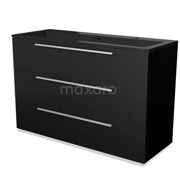 Badmöbel 120cm Modulo Matt Schwarz 3 Schubladen Flaches Waschbecken Quarz