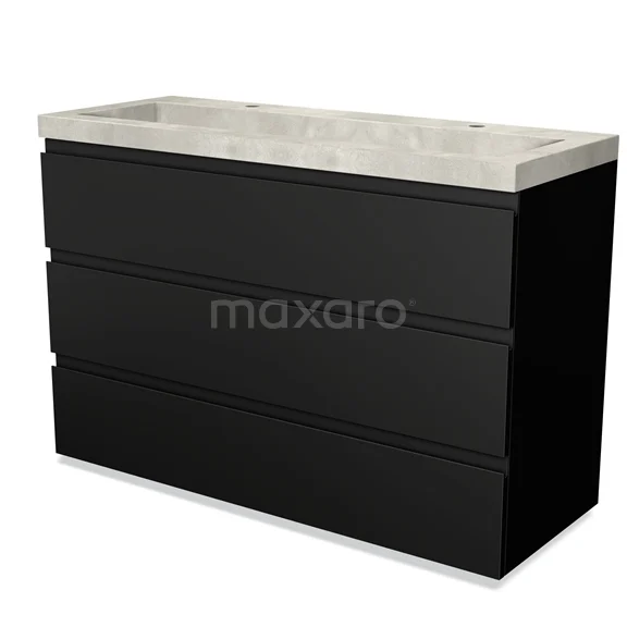 Das bodenstehende Badmöbel (120 cm) ist das Herzstück für die tägliche Körperpflege wie Schminken, Rasieren oder Zähneputzen. Das Waschbecken hat 2 Hahnlöcher und ist ideal für die gleichzeitige Nutzung durch mehrere Personen. Das Möbel bietet außerdem genügend Platz, um Ihre WC- und Pflegeprodukte ordentlich zu verstauen.