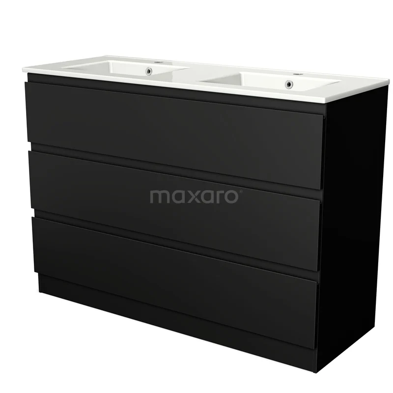 Das bodenstehende Badmöbel (121 cm) ist das Herzstück für die tägliche Körperpflege wie Schminken, Rasieren oder Zähneputzen. Das Waschbecken hat 2 Hahnlöcher und ist ideal für die gleichzeitige Nutzung durch mehrere Personen. Das Möbel bietet außerdem genügend Platz, um Ihre WC- und Pflegeprodukte ordentlich zu verstauen.