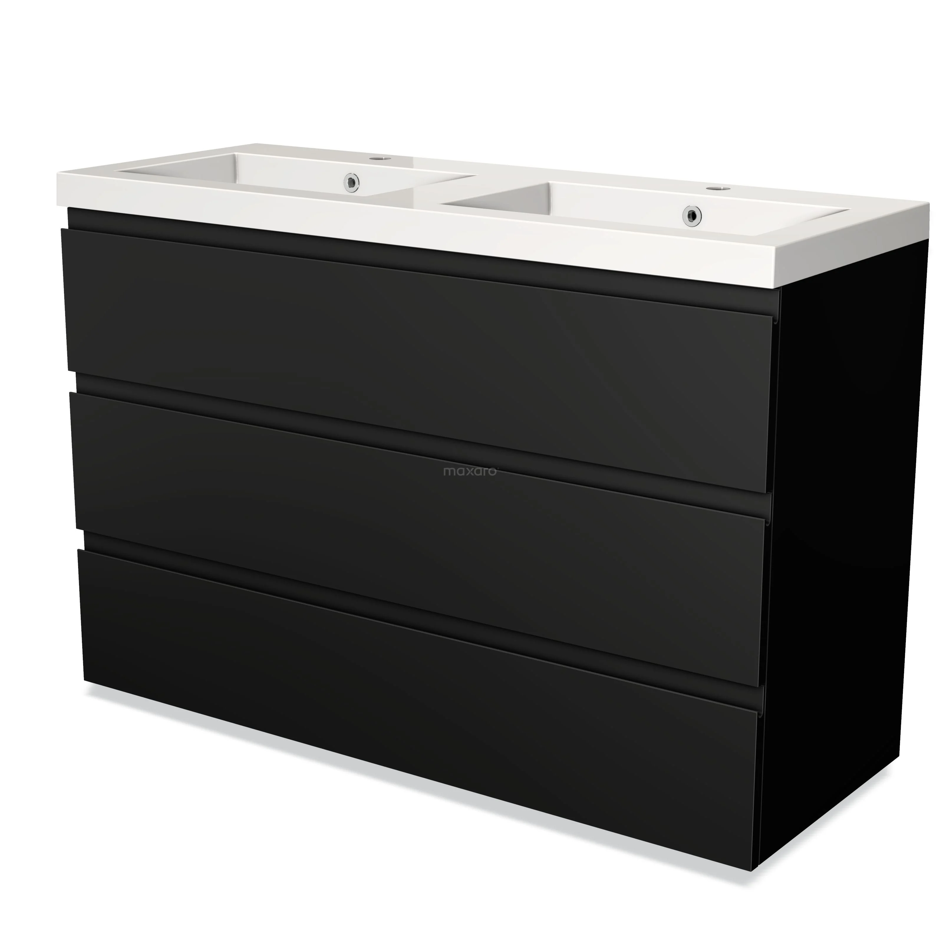 Das bodenstehende Badmöbel (120 cm) ist das Herzstück für die tägliche Körperpflege wie Schminken, Rasieren oder Zähneputzen. Das Waschbecken hat 2 Hahnlöcher und ist ideal für die gleichzeitige Nutzung durch mehrere Personen. Das Möbel bietet außerdem genügend Platz, um Ihre WC- und Pflegeprodukte ordentlich zu verstauen.
