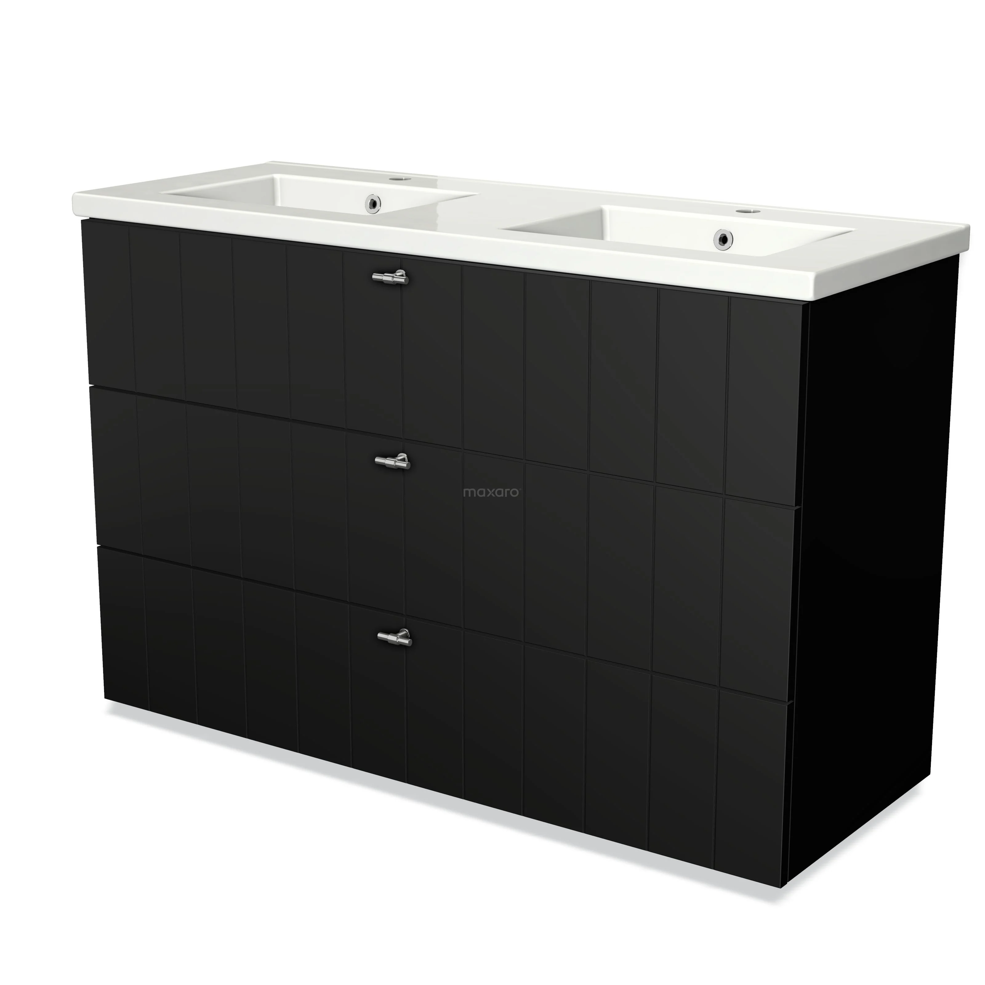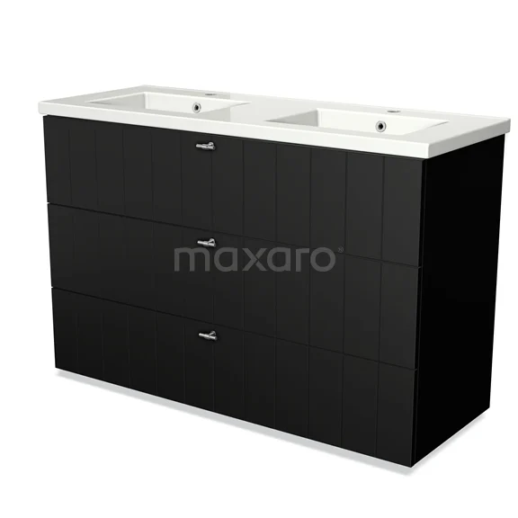 Badmöbel 120cm Modulo Matt Schwarz 3 Schubladen Slat Waschbecken Keramik