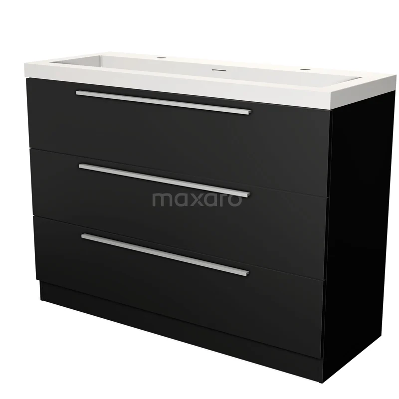 Badmöbel 120cm Modulo Matt Schwarz 3 Schubladen Stehend Flaches Waschbecken Solid Surface