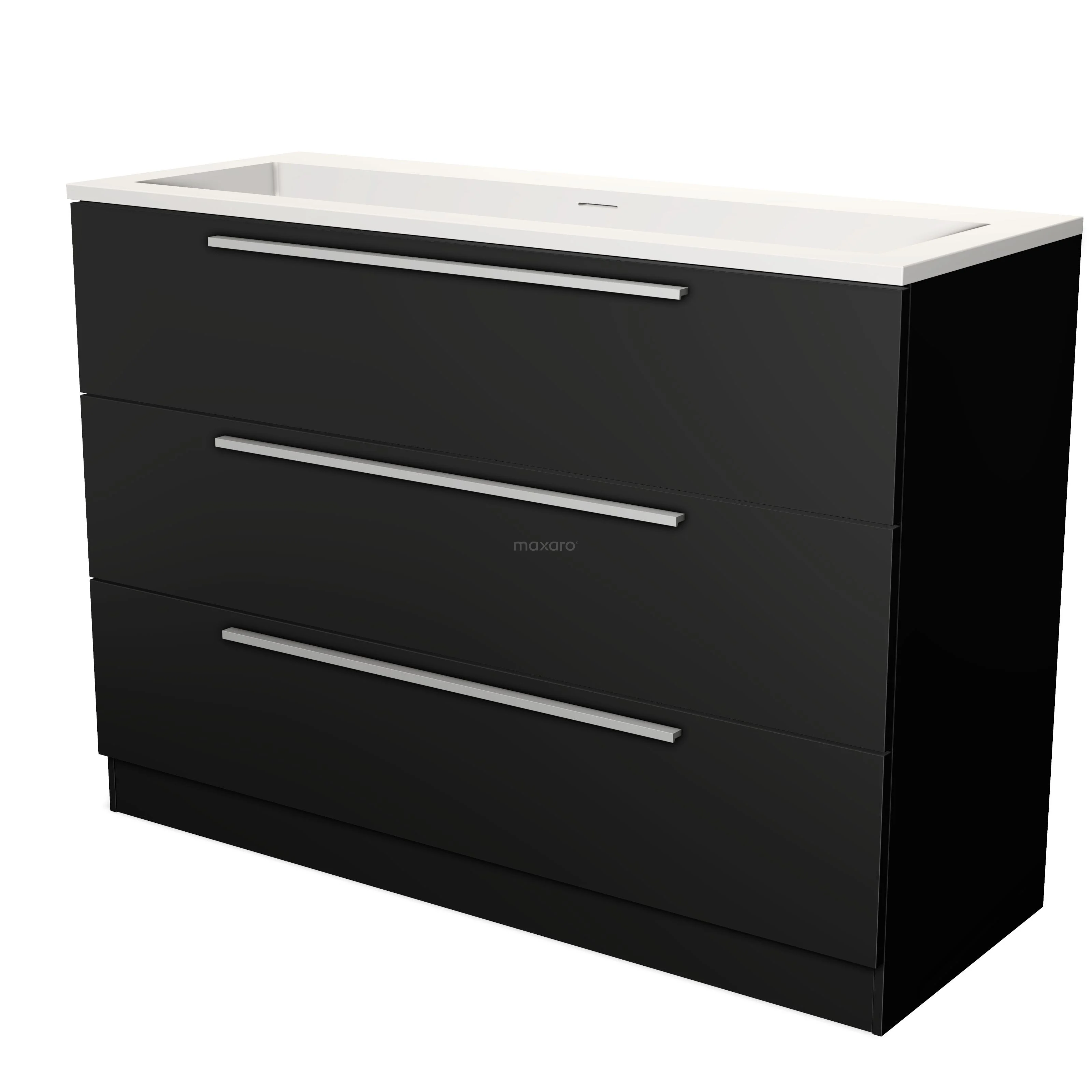 Badmöbel 120cm Modulo Matt Schwarz 3 Schubladen Stehend Flaches Waschbecken Solid Surface