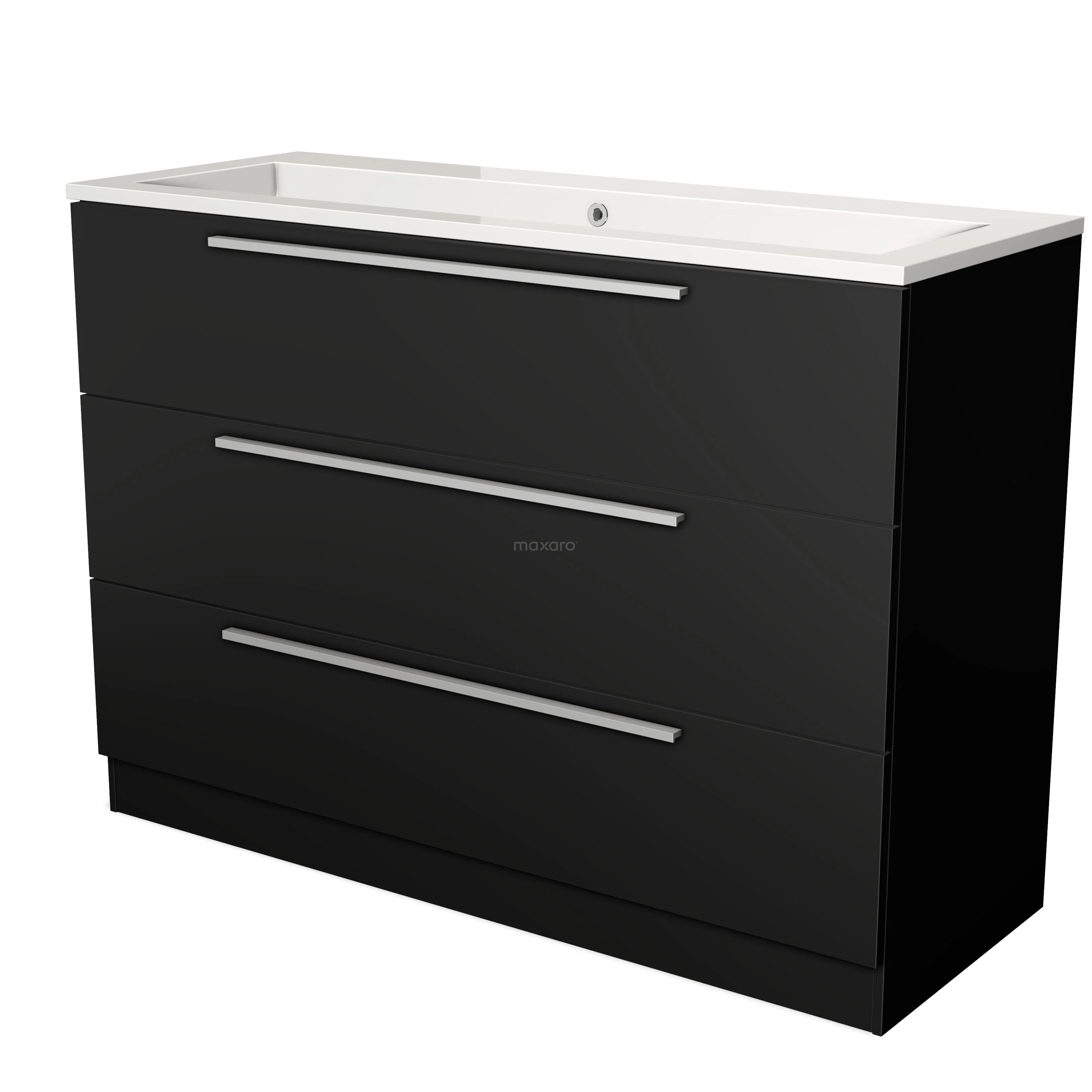 Badmöbel 120cm Modulo Matt Schwarz 3 Schubladen Stehendes Waschbecken Mineralguss