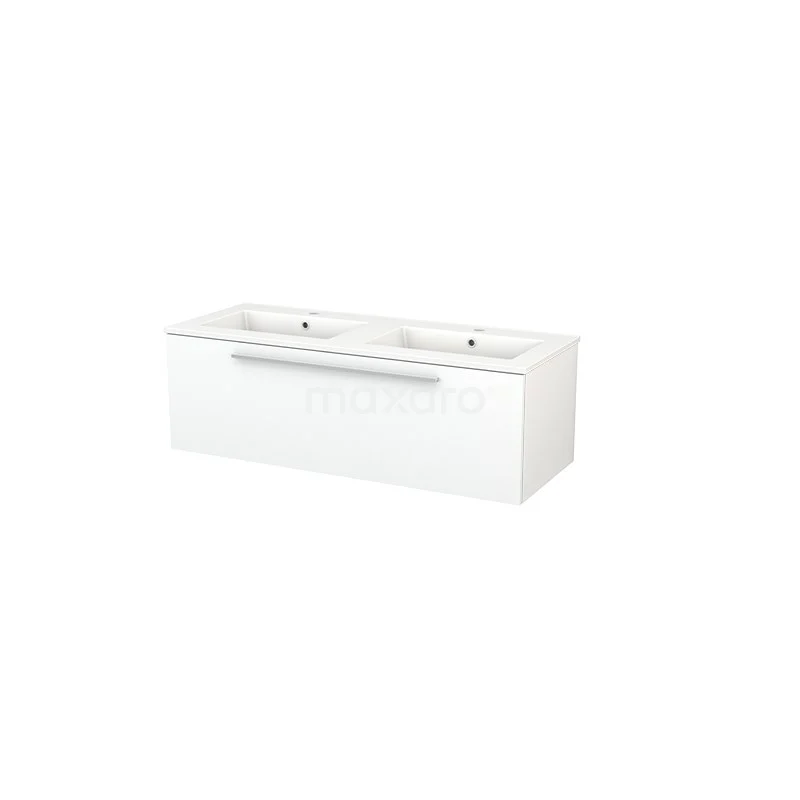Badmöbel 120cm Modulo+ Matt Weiß 1 Schublade Flaches Waschbecken Keramik