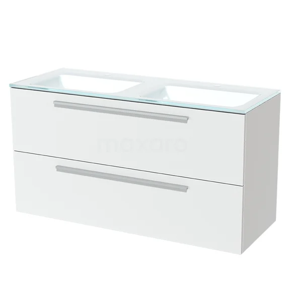Badmöbel 120cm Modulo Matt Weiß 2 Schubladen Flaches Waschbecken Glas