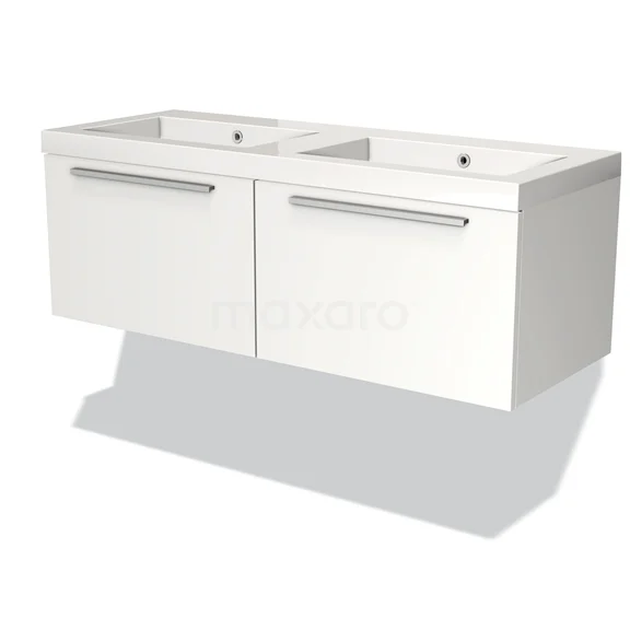 Badmöbel 120cm Modulo Matt Weiß 2 Schubladen Flaches Waschbecken Mineralguss