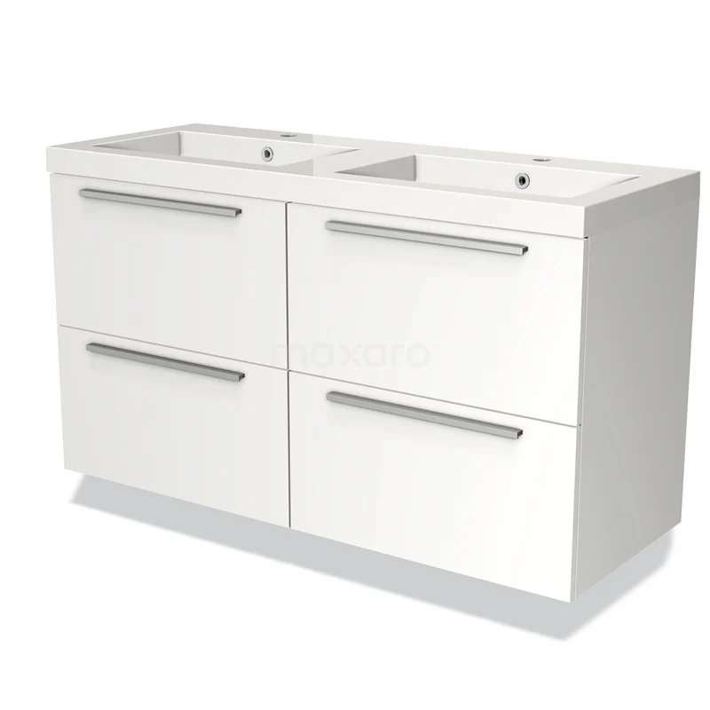 Badmöbel 120cm Modulo Matt Weiß 4 Schubladen Flaches Waschbecken Mineralguss