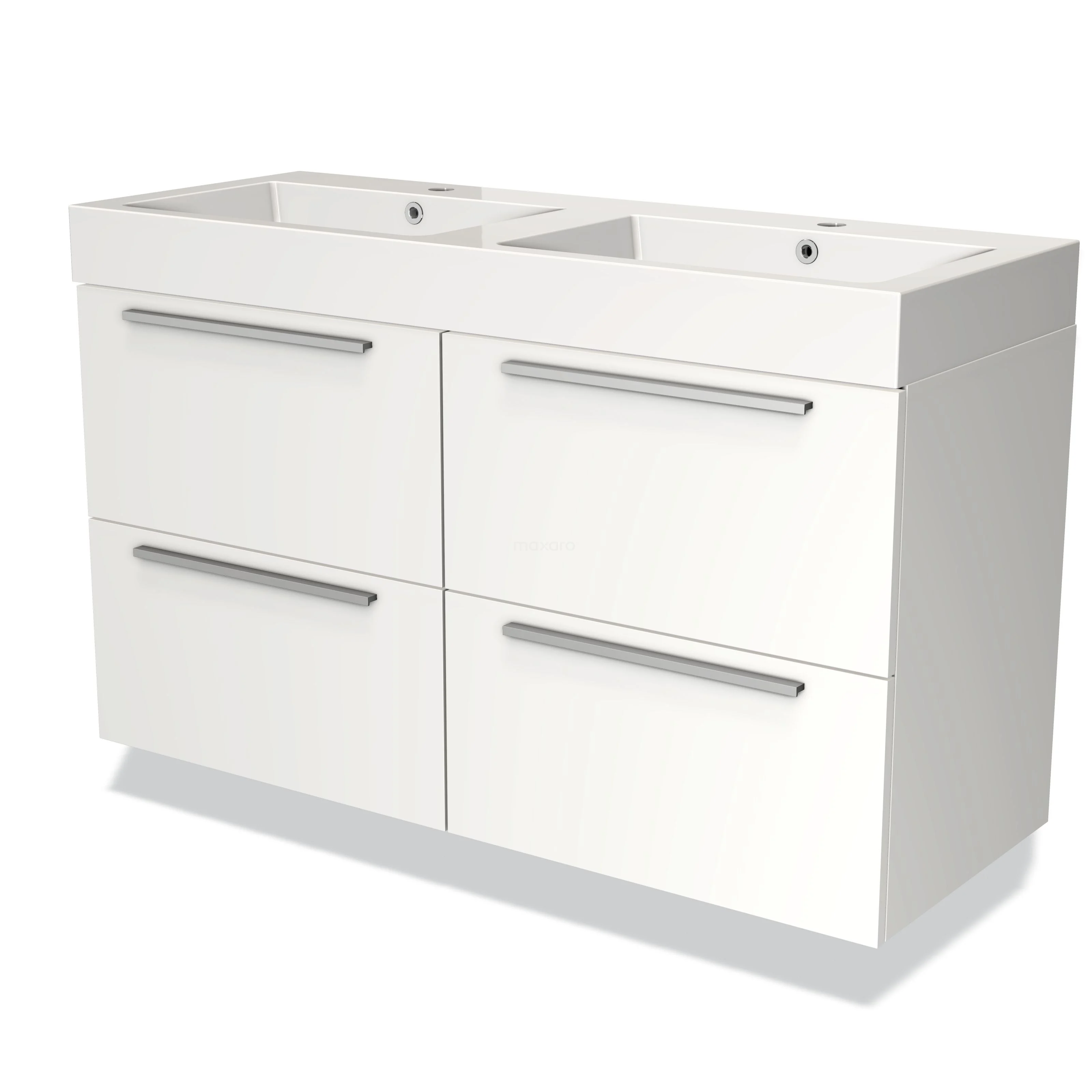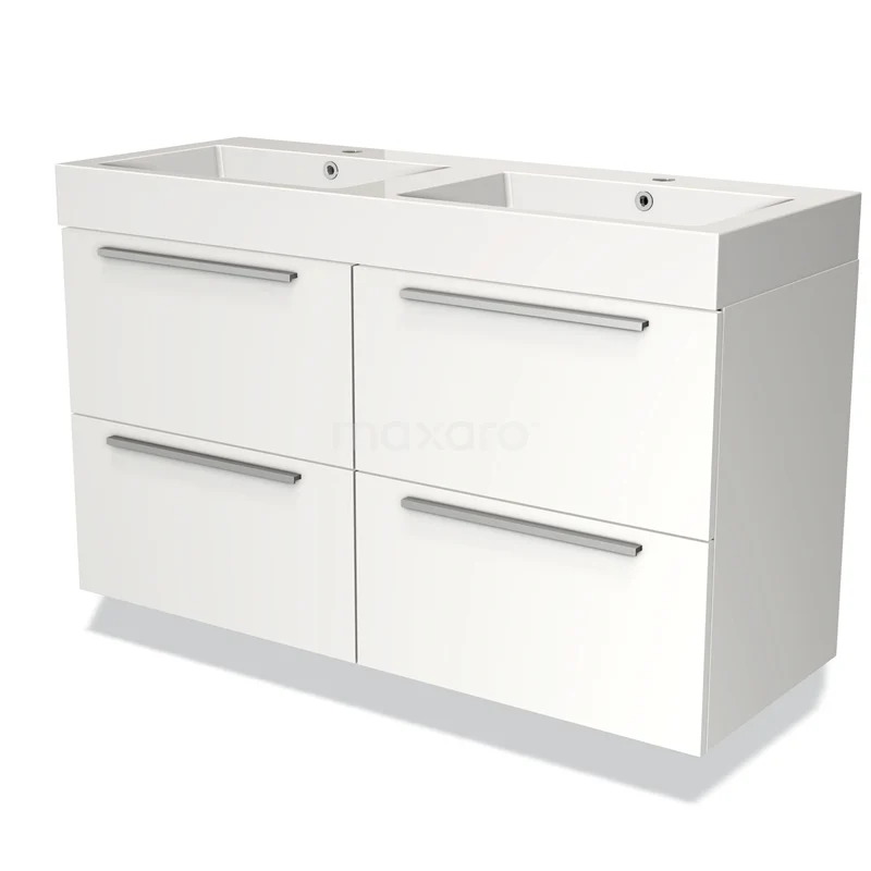 Badmöbel 120cm Modulo Matt Weiß 4 Schubladen Flaches Waschbecken Mineralguss