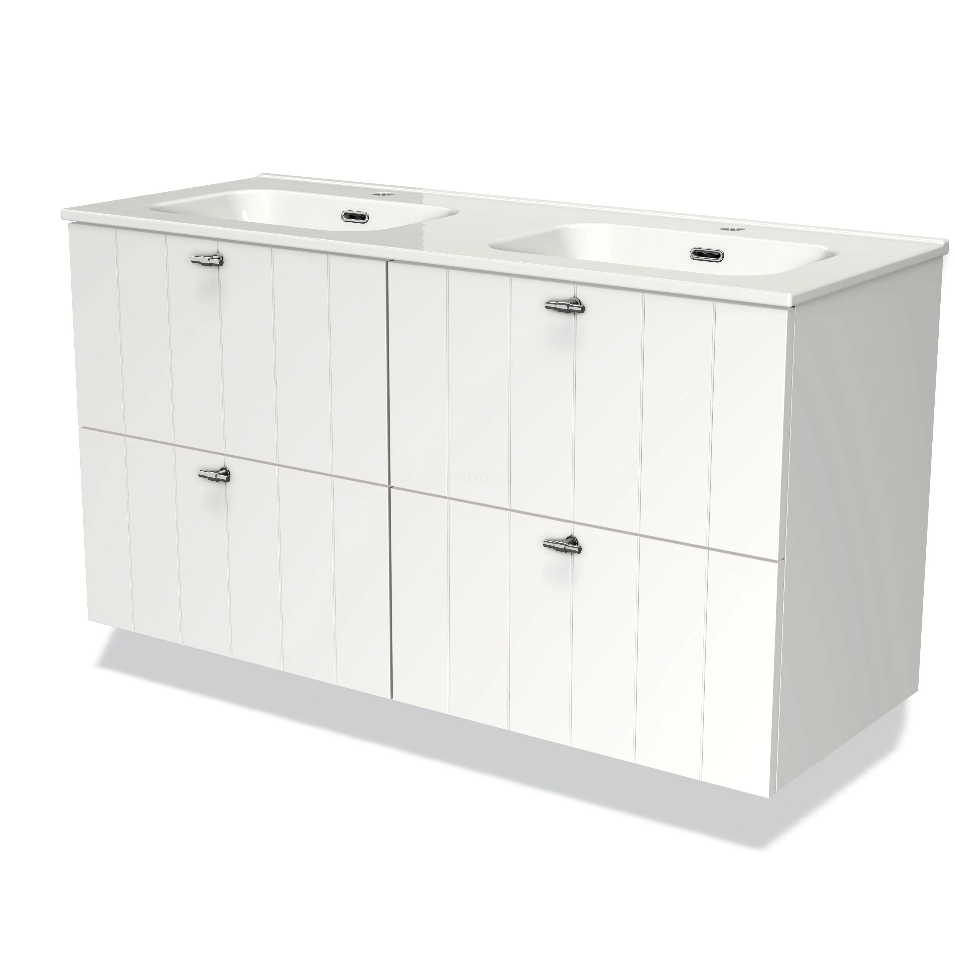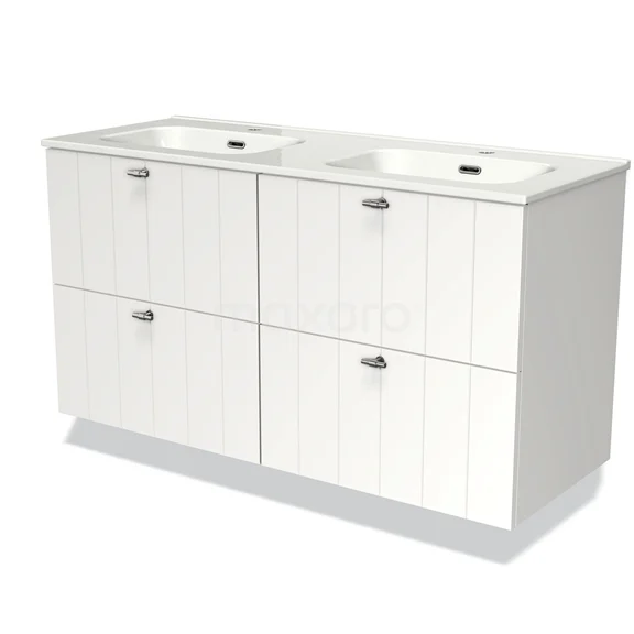 Badmöbel 120cm Modulo Matt Weiß 4 Schubladen Slat Waschbecken Keramik