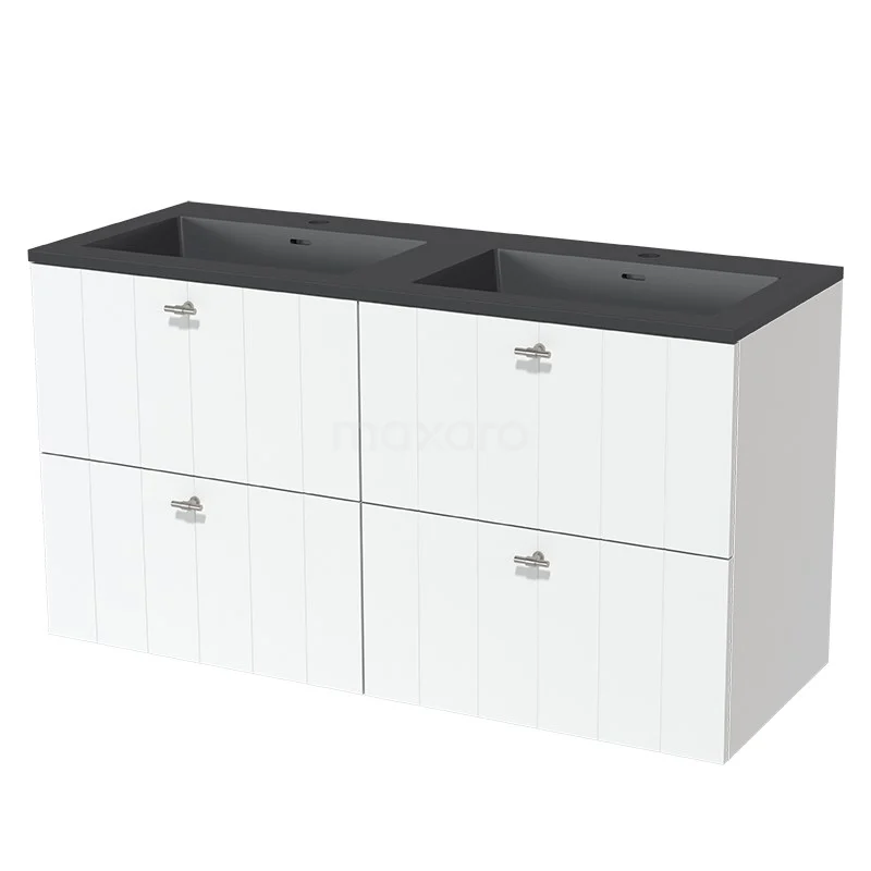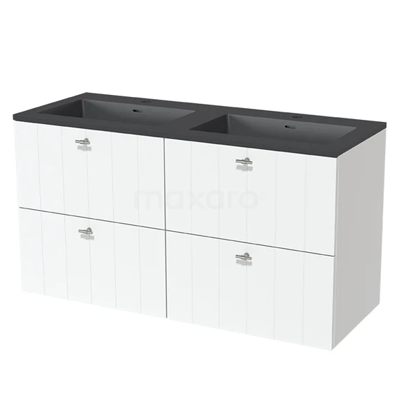 Badmöbel 120cm Modulo Matt Weiß 4 Schubladen Slat Waschbecken Quarz