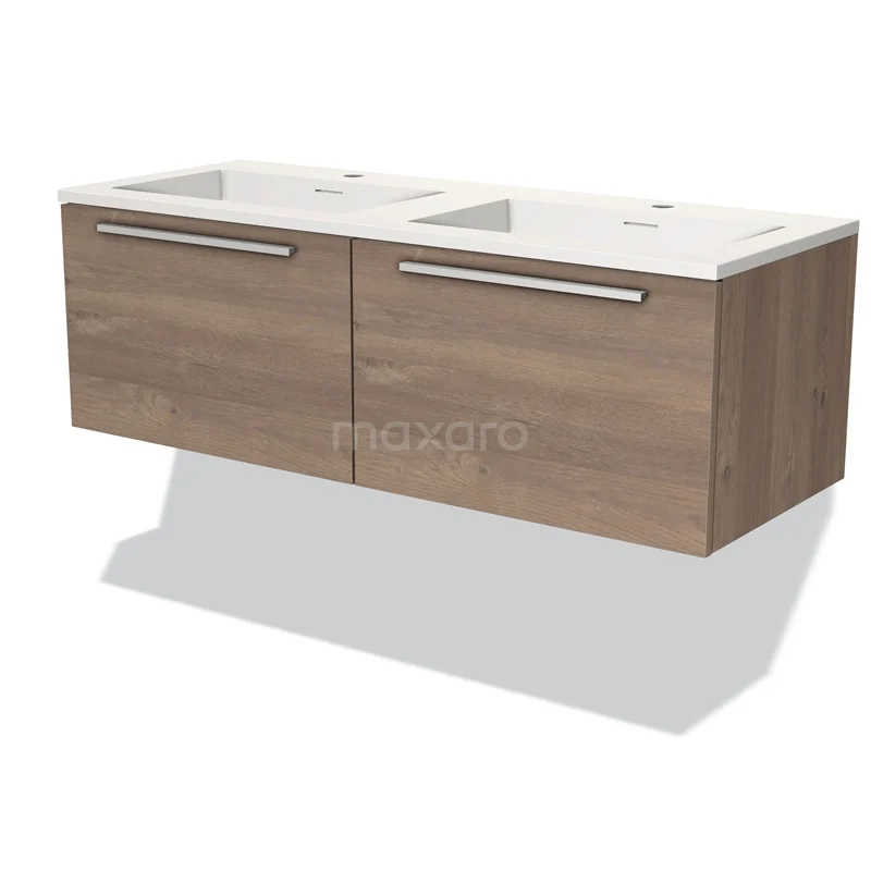 Badmöbel 120cm Modulo mittelbraune Eiche 2 Schubladen Flaches Waschbecken Solid Surface