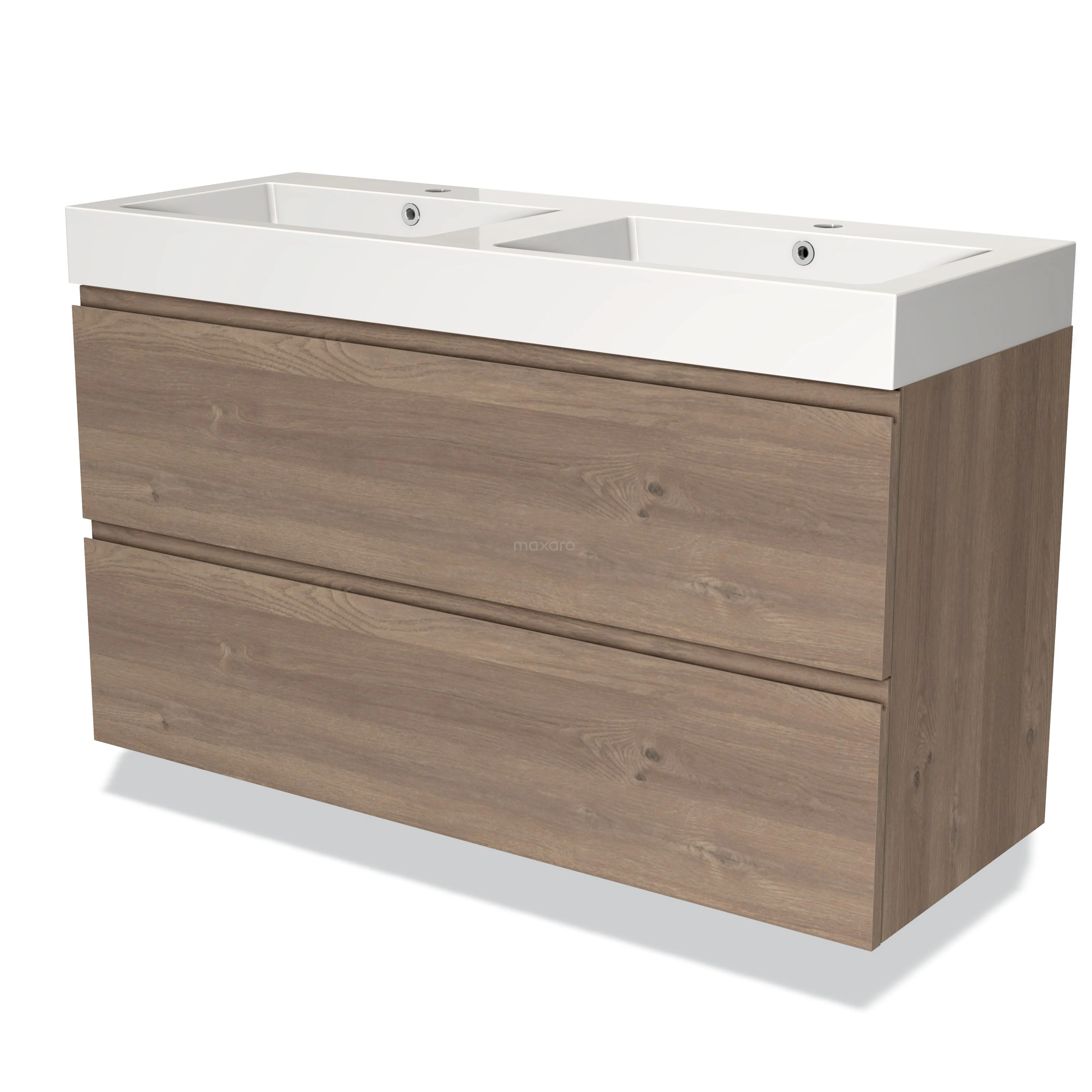 Das bodenstehende Badmöbel (120 cm) ist das Herzstück für die tägliche Körperpflege wie Schminken, Rasieren oder Zähneputzen. Das Waschbecken hat 2 Hahnlöcher und ist ideal für die gleichzeitige Nutzung durch mehrere Personen. Das Möbel bietet außerdem genügend Platz, um Ihre WC- und Pflegeprodukte ordentlich zu verstauen.