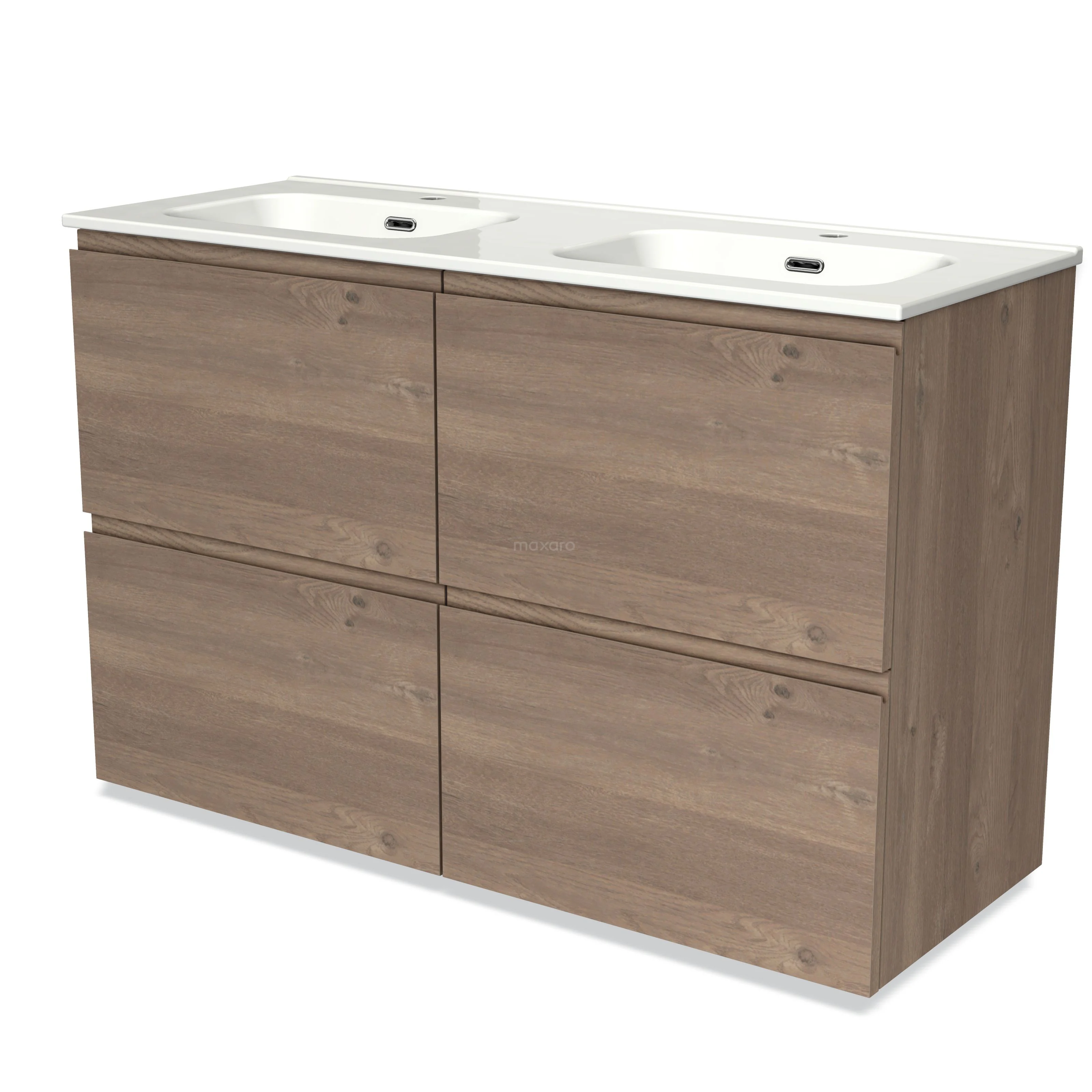Badmöbel 120cm Modulo mittelbraune Eiche 4 hohe Schubladen griffloses Waschbecken Keramik