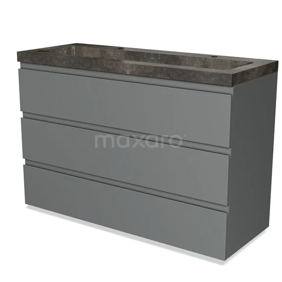 Badmöbel 120cm Modulo Mittelgrau 3 Schubladen Griffloses Waschbecken Naturstein Blaustein