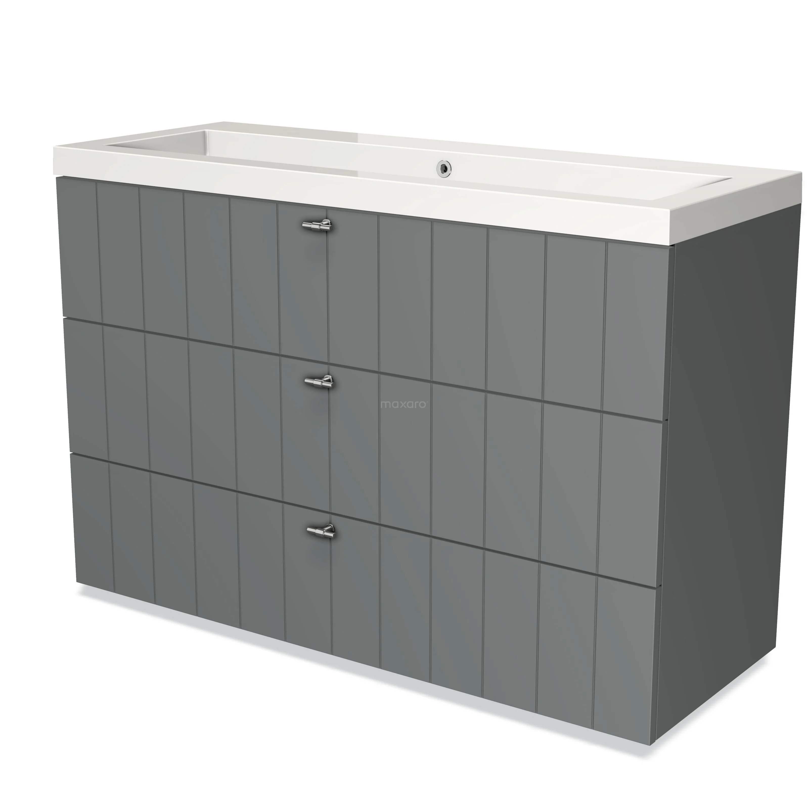 Modulo Waschtische | 120 cm Mittelgrau Lamelle front Mineralguss 3 Schubladen