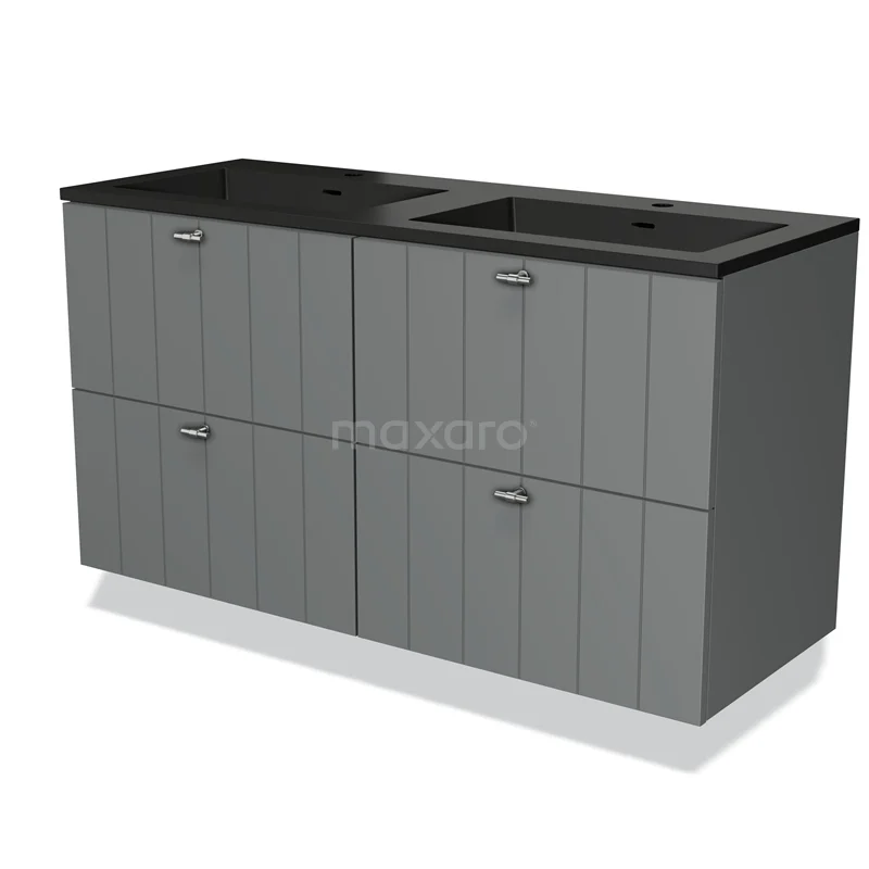 Badmöbel 120cm Modulo Mittelgrau 4 Schubladen Slat Waschbecken Quarz